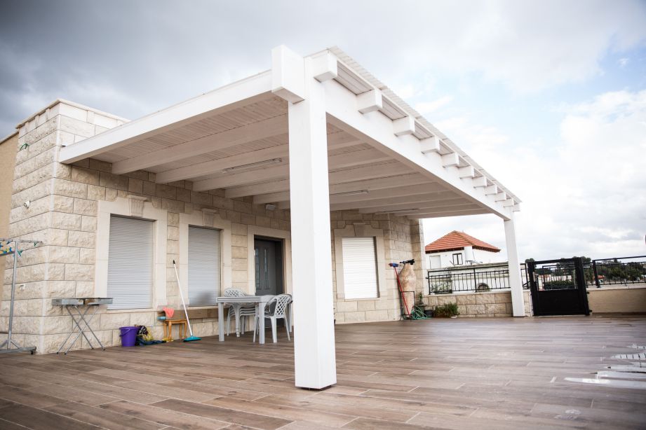 -כסוי חסין-גשם לריהוט גן ולפרגולה יכול לסייע הרבה להארכת תוחלת החיים שלה ומאפשר ישיבה תחתיה גם ביום סגרירי.